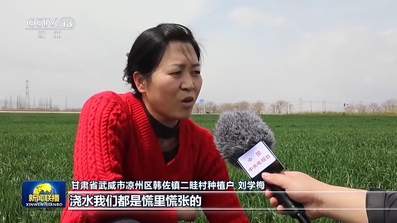 甘肅省武威市涼州區(qū)韓佐鎮(zhèn)二畦村種植戶 劉學(xué)梅:往年這個(gè)時(shí)間,澆水我們都是慌里慌張的。又怕澆不上水,又怕水輪次過(guò)掉了?,F(xiàn)在用水有了保障,看到地里綠油油的麥田,心里既踏實(shí)又高興。