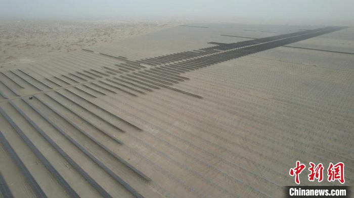 截至3月底,中電建25萬千瓦光伏項目已完成光伏板基樁的建設和第一期5萬余塊光伏板的安裝。今年6月,這里將建成一個占地約7000畝、年發(fā)電量4.14億千瓦時的光伏基地,并配套建設一座220千伏升壓站,通過“光伏+治沙”筑牢生態(tài)防線。