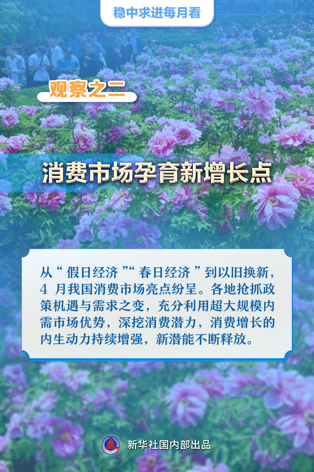 【記者觀察】從“假日經(jīng)濟(jì)”“春日經(jīng)濟(jì)”到以舊換新,4月我國消費(fèi)市場亮點(diǎn)紛呈。各地?fù)屪フ邫C(jī)遇與需求之變,充分利用超大規(guī)模內(nèi)需市場優(yōu)勢,深挖消費(fèi)潛力,消費(fèi)增長的內(nèi)生動力持續(xù)增強(qiáng),新潛能不斷釋放。