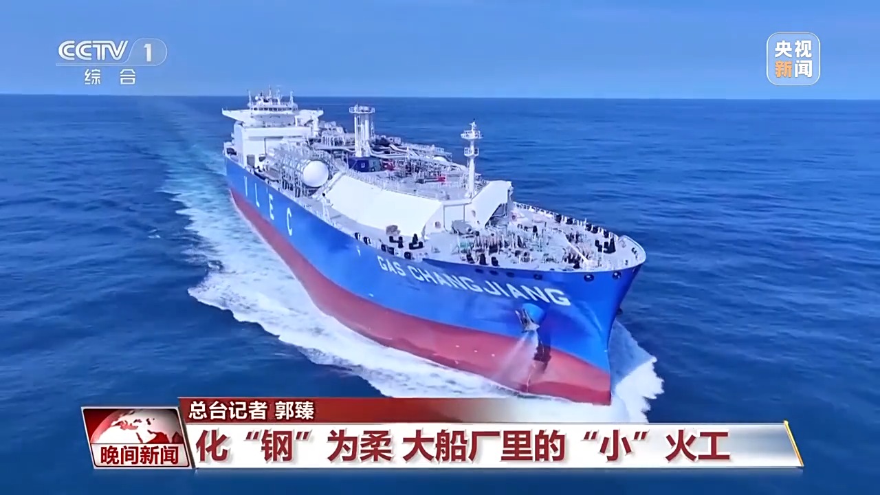 4月下旬,上海長(zhǎng)興的江南造船基地,剛剛交付一艘世界最大艙容——99000立方米超大型乙烷雙燃料運(yùn)輸船,這艘船的船首球形鼻首和船尾上復(fù)雜曲線鋼板,正是火工班組的師傅們精心打造的。