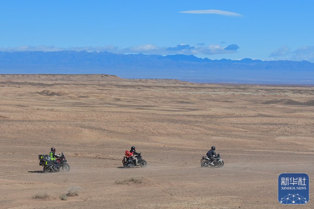 在新疆克拉瑪依市烏爾禾區(qū),車友在無人區(qū)體驗(yàn)越野騎行(5月2日攝)。