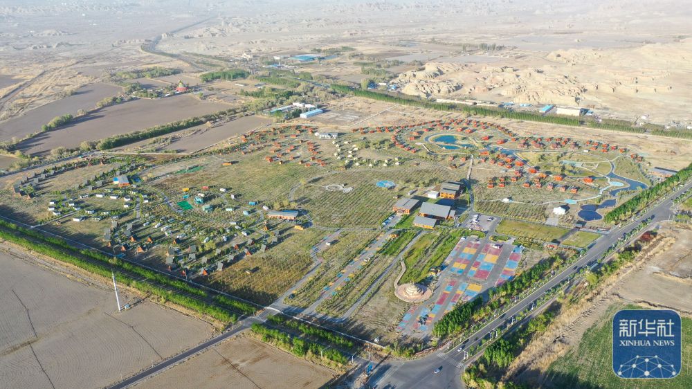 這是在新疆克拉瑪依市烏爾禾區(qū)拍攝的烏爾禾國際房車露營公園(5月2日攝,無人機(jī)照片)。