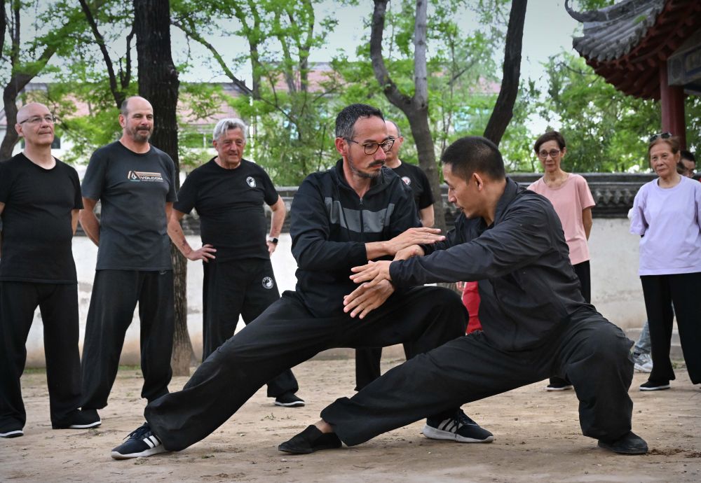 ↑2024年4月20日,河南溫縣陳家溝太極拳學校的學生在為法國、美國學員進行太極拳表演。體育架起了中法兩國人民友誼的橋梁 60年來中法間體育人文交往源遠流長