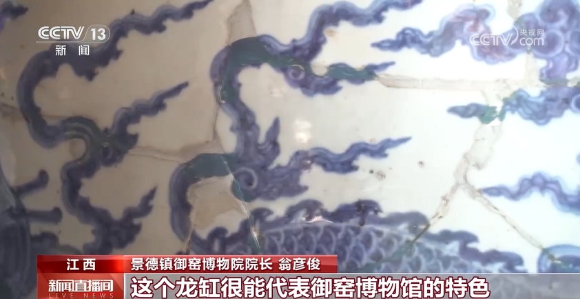景德鎮(zhèn)御窯博物院院長(zhǎng) 翁彥俊:我們的所有的展品都來(lái)自于我們身后的御窯廠(chǎng),通過(guò)考古挖掘出來(lái)的。當(dāng)年御窯對(duì)落選品的處理制度非常嚴(yán)格,不合格的就要打碎還集中掩埋,所以我們能夠發(fā)現(xiàn)這么多的碎片,并且能夠把它拼對(duì)出來(lái)。這個(gè)龍缸很能代表御窯博物館的特色。
