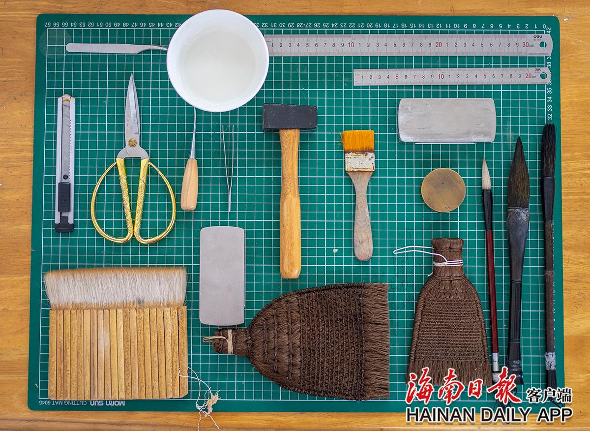 古籍修復師黃文鋒的部分工具。海南日報記者袁琛 攝