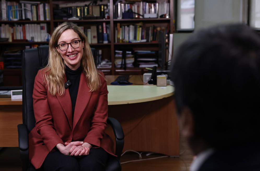2024年1月8日,戴高樂(lè)將軍的曾孫女納塔莉·戴高樂(lè)在法國(guó)巴黎接受新華社記者專訪。新華社記者高靜 攝