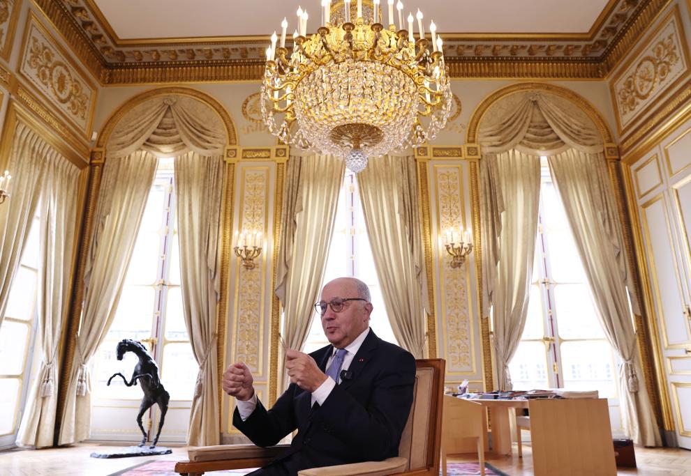 2023年12月12日,在位于法國(guó)巴黎的憲法委員會(huì)主席辦公室里,法比尤斯接受新華社記者獨(dú)家專訪。新華社記者高靜 攝