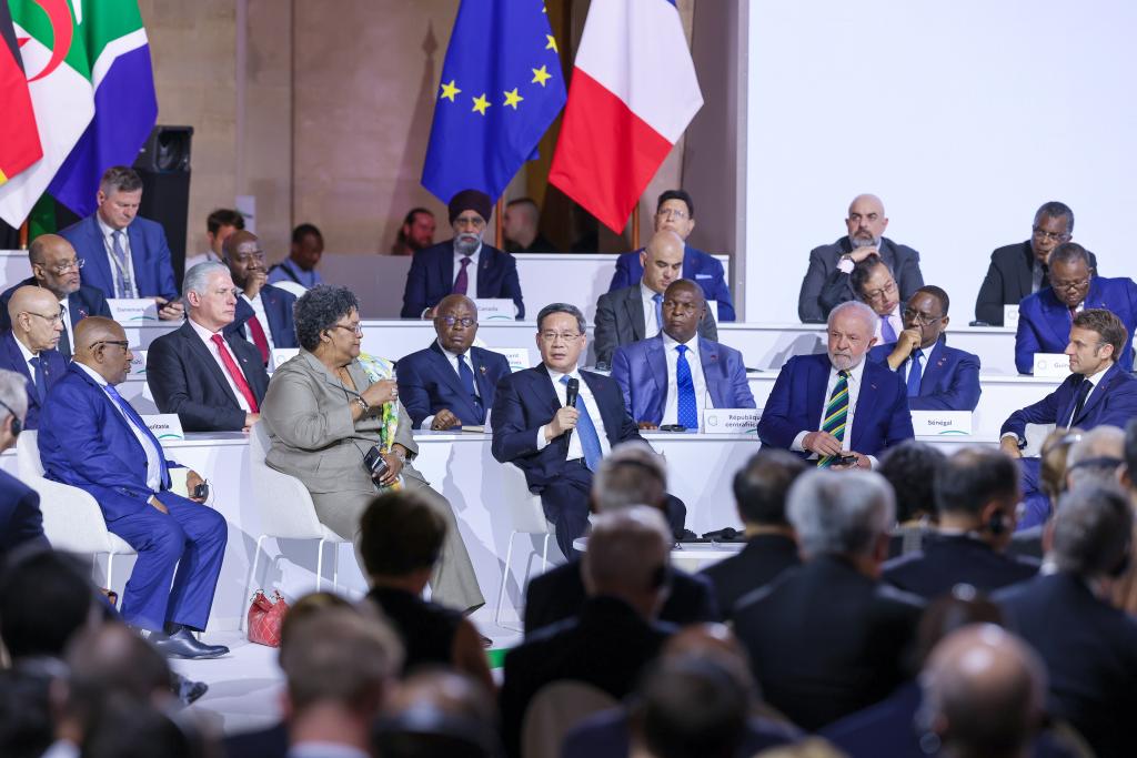 2023年6月23日上午,國(guó)務(wù)院總理李強(qiáng)在巴黎出席新全球融資契約峰會(huì)閉幕式并發(fā)表講話。新華社記者劉彬 攝
