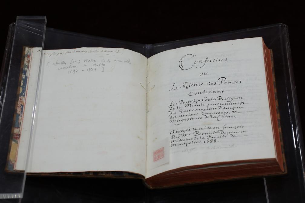 2024年1月28日典藏于中國(guó)國(guó)家圖書館中的法國(guó)國(guó)禮《論語(yǔ)導(dǎo)讀》(資料照片)。新華社記者張爽 攝