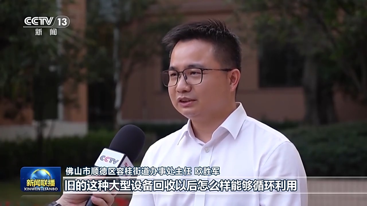佛山市順德區(qū)容桂街道辦事處主任 歐勝軍:舊的這種大型設(shè)備回收以后怎么樣能夠循環(huán)利用,下一步我們也是由國(guó)資公司來(lái)跟我們本土的家電回收龍頭企業(yè)來(lái)進(jìn)行開(kāi)發(fā),我們跟企業(yè)正在對(duì)接。