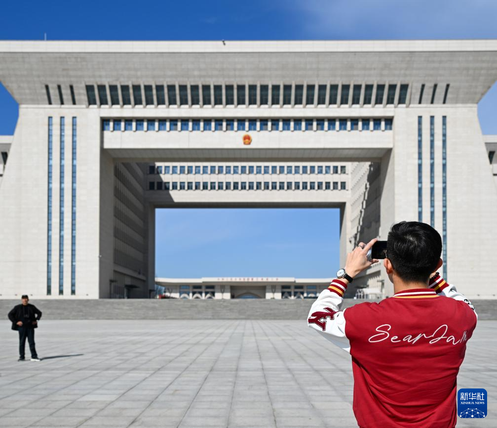 4月18日11時(shí)許,游客在霍爾果斯口岸新國(guó)門拍照留念。
