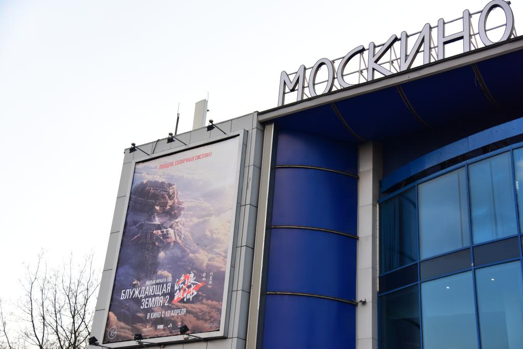 這是在俄羅斯首都莫斯科“莫斯科電影”旗下的宇宙電影院外拍攝的《流浪地球2》電影宣傳海報(bào)。新華社記者 華迪 攝