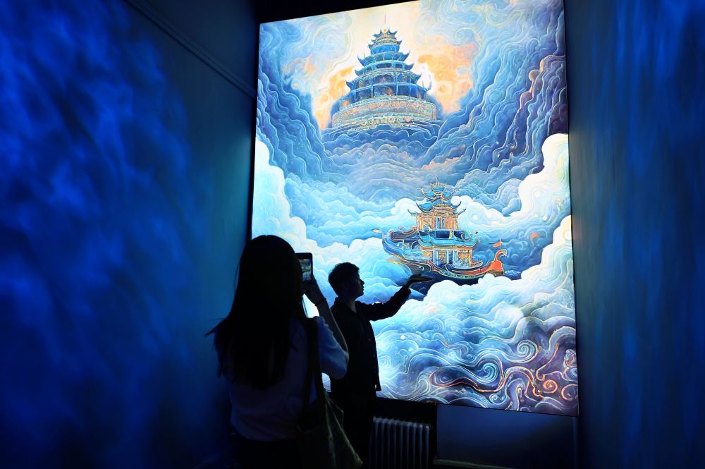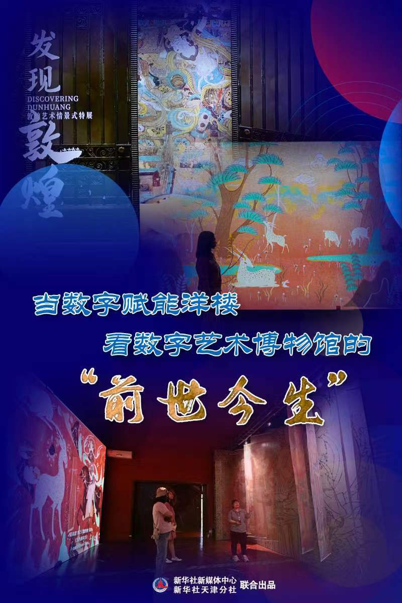 “很多觀眾感受到‘在百年洋樓中仰望千年文明’的奇妙感覺?!碧旖驍?shù)字藝術(shù)博物館講解員黃麗潔說,這個展覽互動性、社交感強,通過對經(jīng)典藝術(shù)作品沉浸式呈現(xiàn),讓數(shù)字藝術(shù)走近普通觀眾,為大眾文化生活帶來全新體驗。