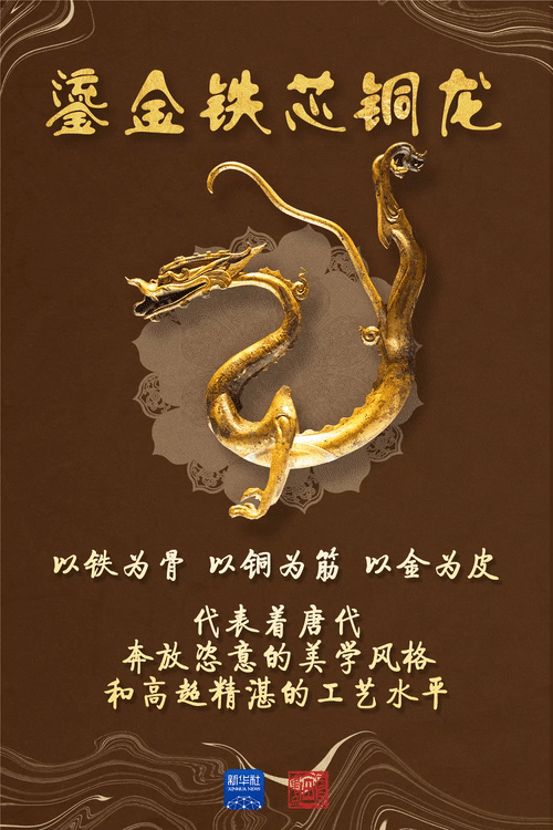 與葡萄花鳥紋銀香囊的精美奇巧不同,另一件唐代文物鎏金鐵芯銅龍則展現(xiàn)了大唐奔放恣意的氣勢。