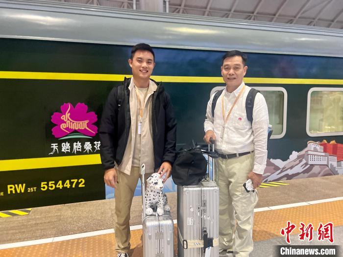 圖為陳瑞生(右)與朋友在旅游專(zhuān)列前合影。李江寧 攝