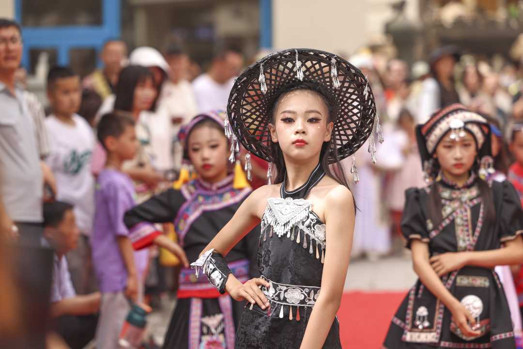 2024年5月19日,演員在庫(kù)車(chē)市龜茲小巷為游客表演模特秀。袁歡歡攝(中經(jīng)視覺(jué))