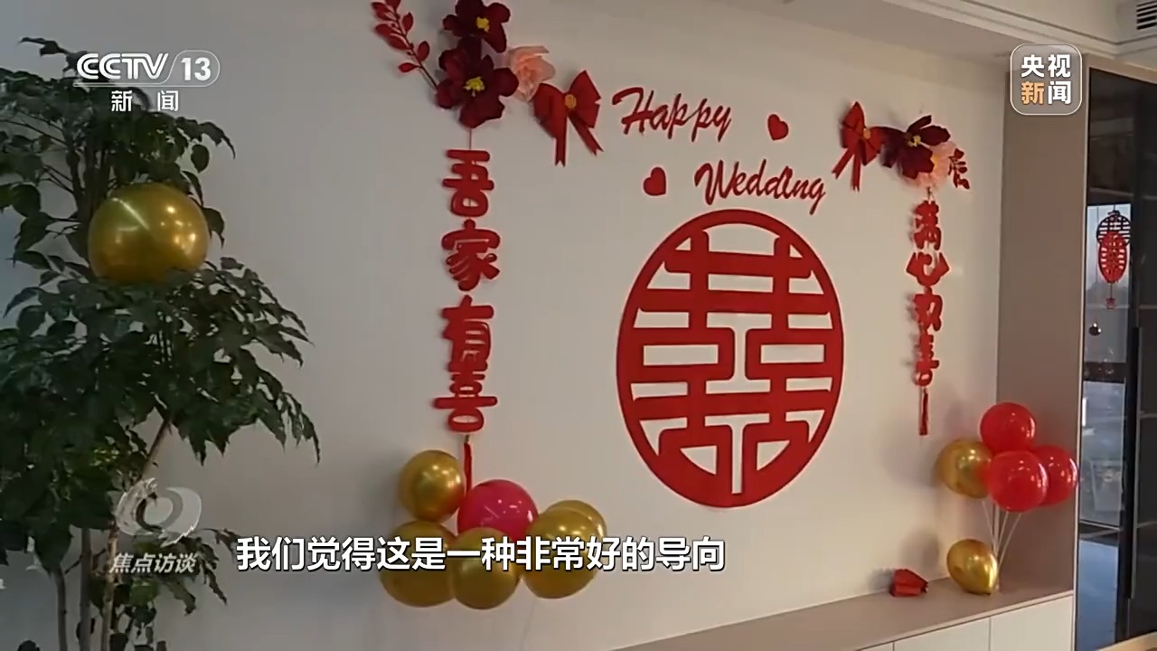 共青團(tuán)中央宣傳部副部長 劉釗:我們?cè)谶M(jìn)行社會(huì)倡導(dǎo),進(jìn)行文明引導(dǎo),在各地舉辦了很多集體婚禮,確實(shí)得到了基層青年比較熱烈比較積極的響應(yīng)。他們用更樸素更自然更貼近自己實(shí)際需求的方式方法來籌辦自己的婚禮,也來回應(yīng)一些高額彩禮給他們所帶來的壓力,我們覺得這是一種非常好的導(dǎo)向。