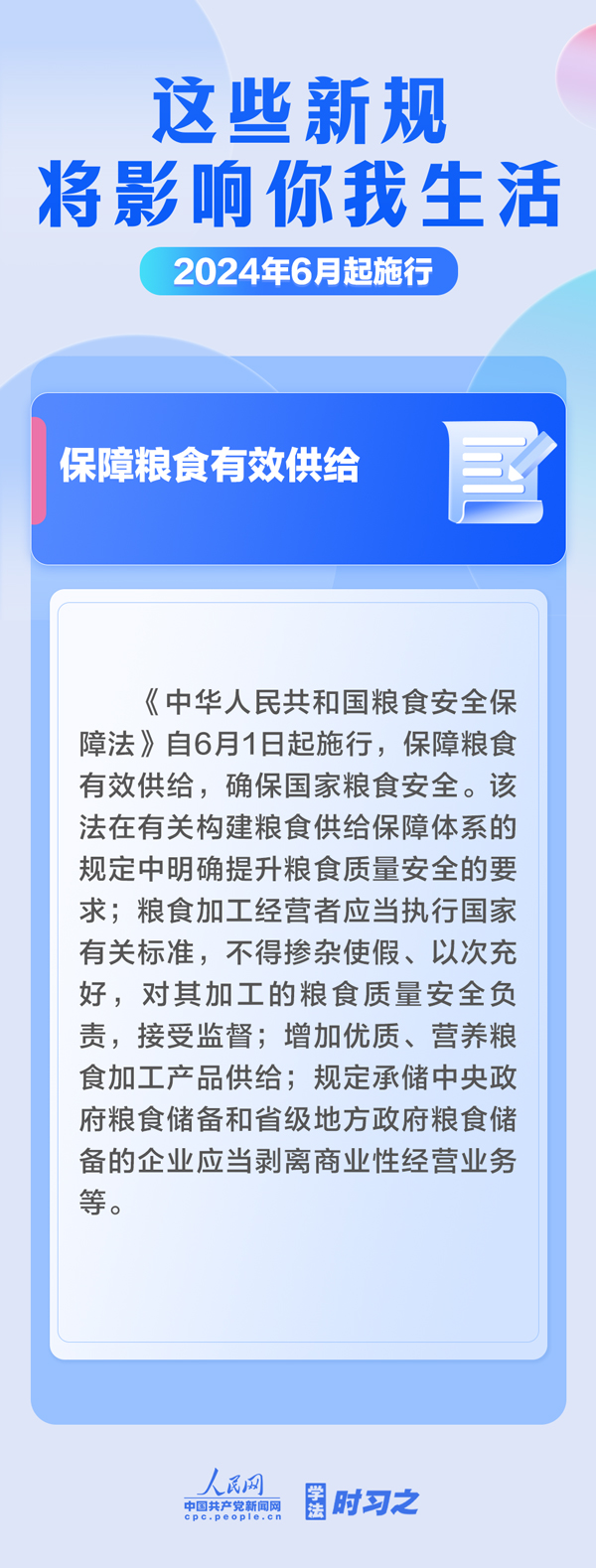 保障糧食有效供給;確立生態(tài)保護(hù)補(bǔ)償基本制度規(guī)則;規(guī)范保障海警機(jī)構(gòu)依法履職……6月起,這些新規(guī)施行,將影響你我生活。