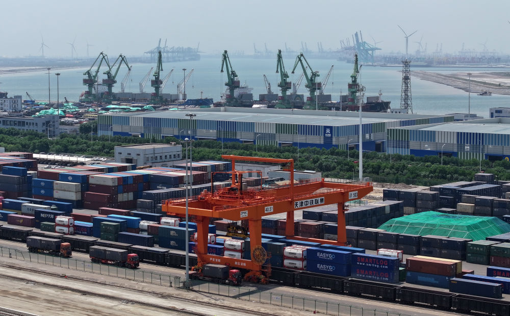 天津港正在實(shí)現(xiàn)“貨通全球”:北京的汽車運(yùn)往東南亞,裝滿進(jìn)口礦石的列車駛向中國西北,日韓生產(chǎn)的日用品短暫停留后發(fā)往蒙古國,新疆的番茄醬從這里“乘船出海”前往歐洲……