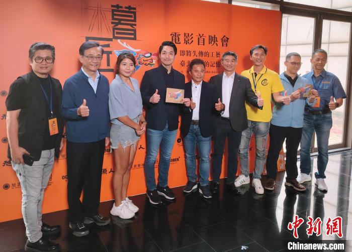 講述知名龍舟匠師劉清正故事的紀(jì)錄片《暮匠》首映會近日在臺北舉行。圖為臺北市市長蔣萬安(左四)、導(dǎo)演林佳儒(左三)、出品方旭源營造工程公司董事長朱東輝(右五)出席活動。中新社記者 劉舒凌 攝