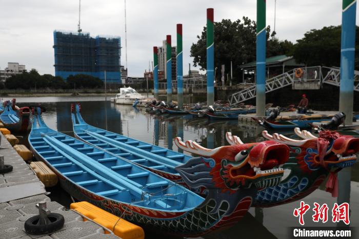 端午將至,穿過臺北市區(qū)的基隆河上,三腳渡碼頭平日擺放的龍舟使用頻率明顯升高,許多團(tuán)隊(duì)利用周日加緊操槳練習(xí)。