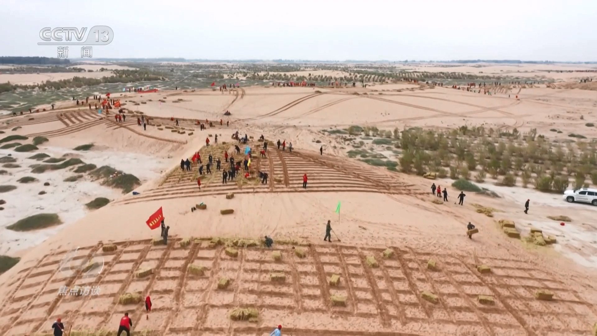 甘肅民勤是河西走廊—塔克拉瑪干沙漠邊緣阻擊戰(zhàn)主戰(zhàn)場(chǎng)之一,十多年來(lái),這里固沙、造林從未間斷。