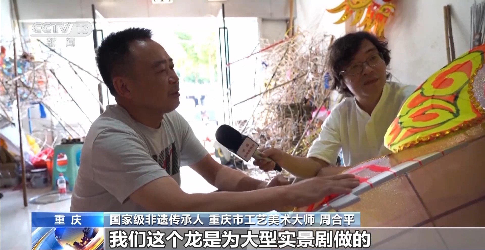 周合平告訴記者,龍燈彩扎這項(xiàng)非遺技藝有六百多年的歷史,他是從小跟著爺爺學(xué)會(huì)的。家族三代人,參與和見證了龍燈龍舞在國(guó)慶50周年、60周年和70周年慶祝典禮上的大放異彩。