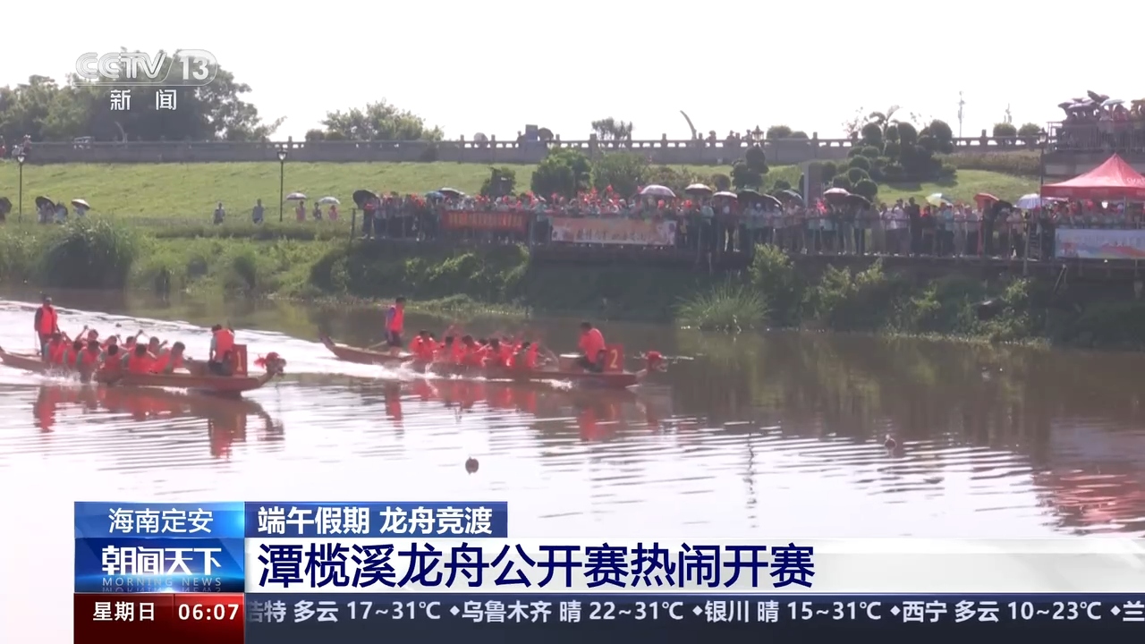 另外,在海南定安縣,當?shù)嘏e行的定安潭欖溪龍舟公開賽日前也正式開賽。