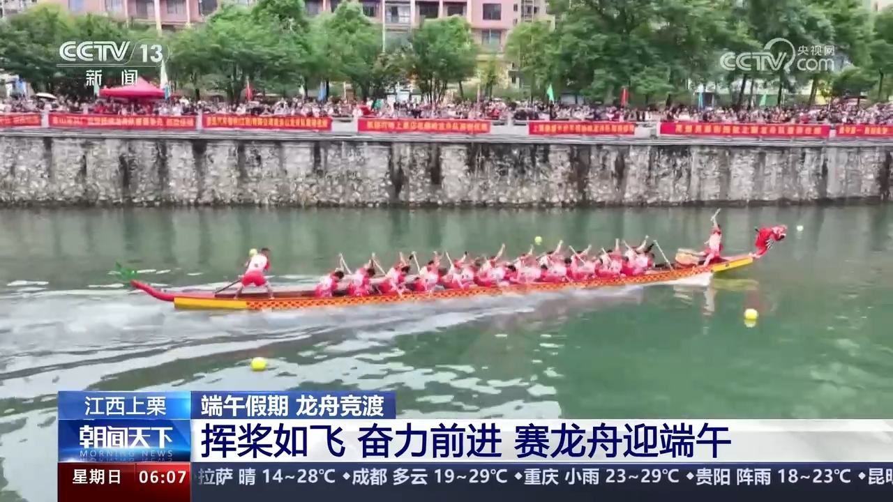 在江西,當?shù)匾才e辦了端午龍舟賽,為群眾營造出濃厚的節(jié)日氣氛。