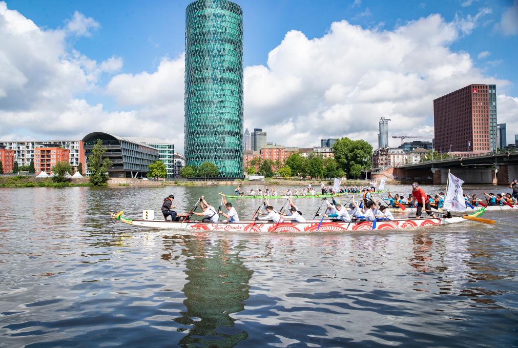 5月25日,在德國法蘭克福,龍舟隊(duì)伍在美因河上參加比賽。第一屆法蘭克福國際龍舟友誼賽暨2024年法蘭克福中國節(jié)開幕式當(dāng)日舉行,來自中國、德國、意大利等國的龍舟隊(duì)同臺競技,現(xiàn)場豐富多彩的中國文化展演活動(dòng)吸引大批觀眾參與。新華社記者 張帆 攝