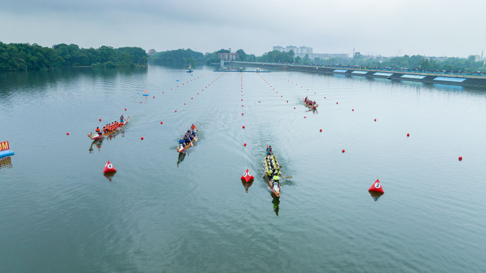 圖為6月10日端午節(jié)在重慶舉行的“大足石刻杯”成渝雙城經濟圈龍舟邀請賽決賽現場。(瞿波 攝)