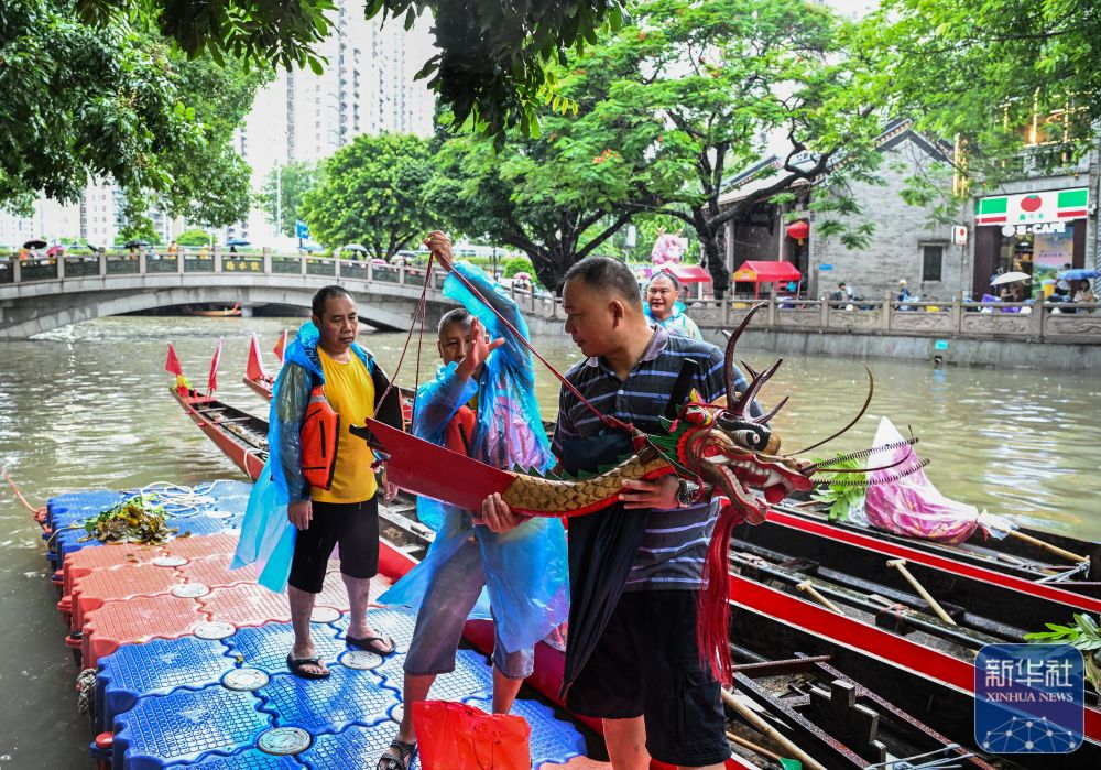 獵德村村民舉行活動,為端午期間的“龍船景”做準備(6月1日攝)。