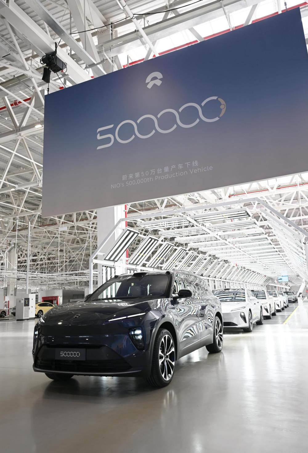 在安徽省合肥市新橋智能電動汽車產業(yè)園蔚來合肥第二工廠,蔚來第50萬臺量產車下線(2024年5月9日攝)。