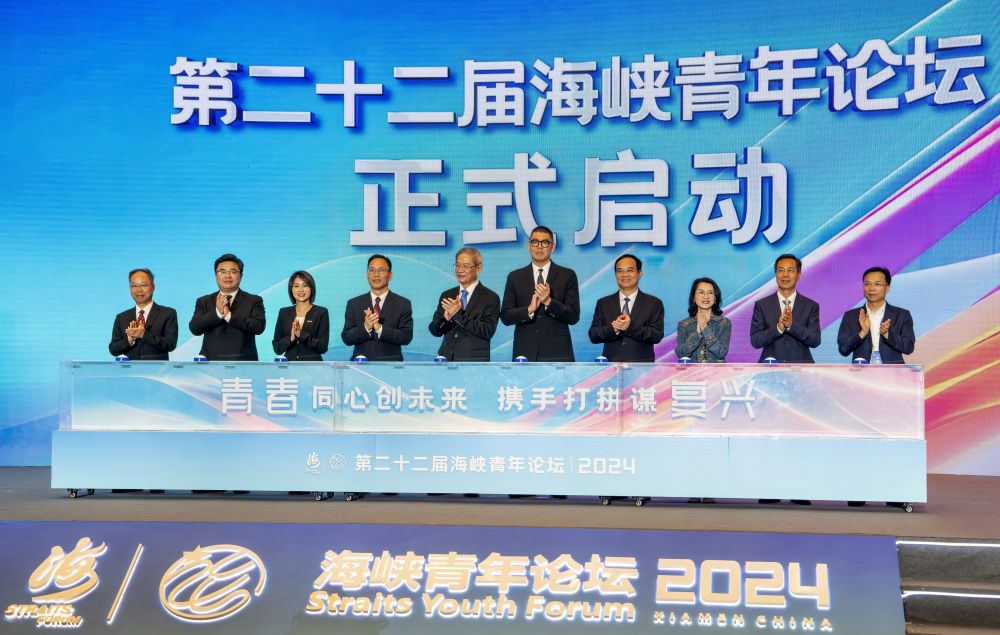 6月14日,出席海峽青年論壇的嘉賓共同啟動第二十二屆海峽青年論壇。新華社記者 魏培全 攝