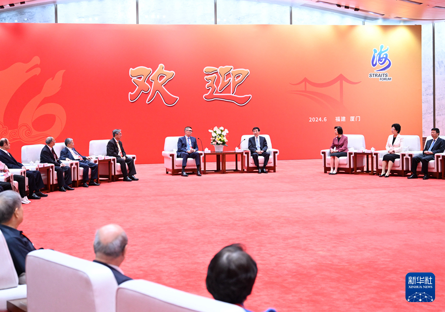 6月15日,第十六屆海峽論壇大會(huì)在廈門舉行。中共中央政治局常委、全國(guó)政協(xié)主席王滬寧出席并致辭。這是大會(huì)開始前,王滬寧會(huì)見參加論壇的臺(tái)灣嘉賓代表。新華社記者 申宏 攝
