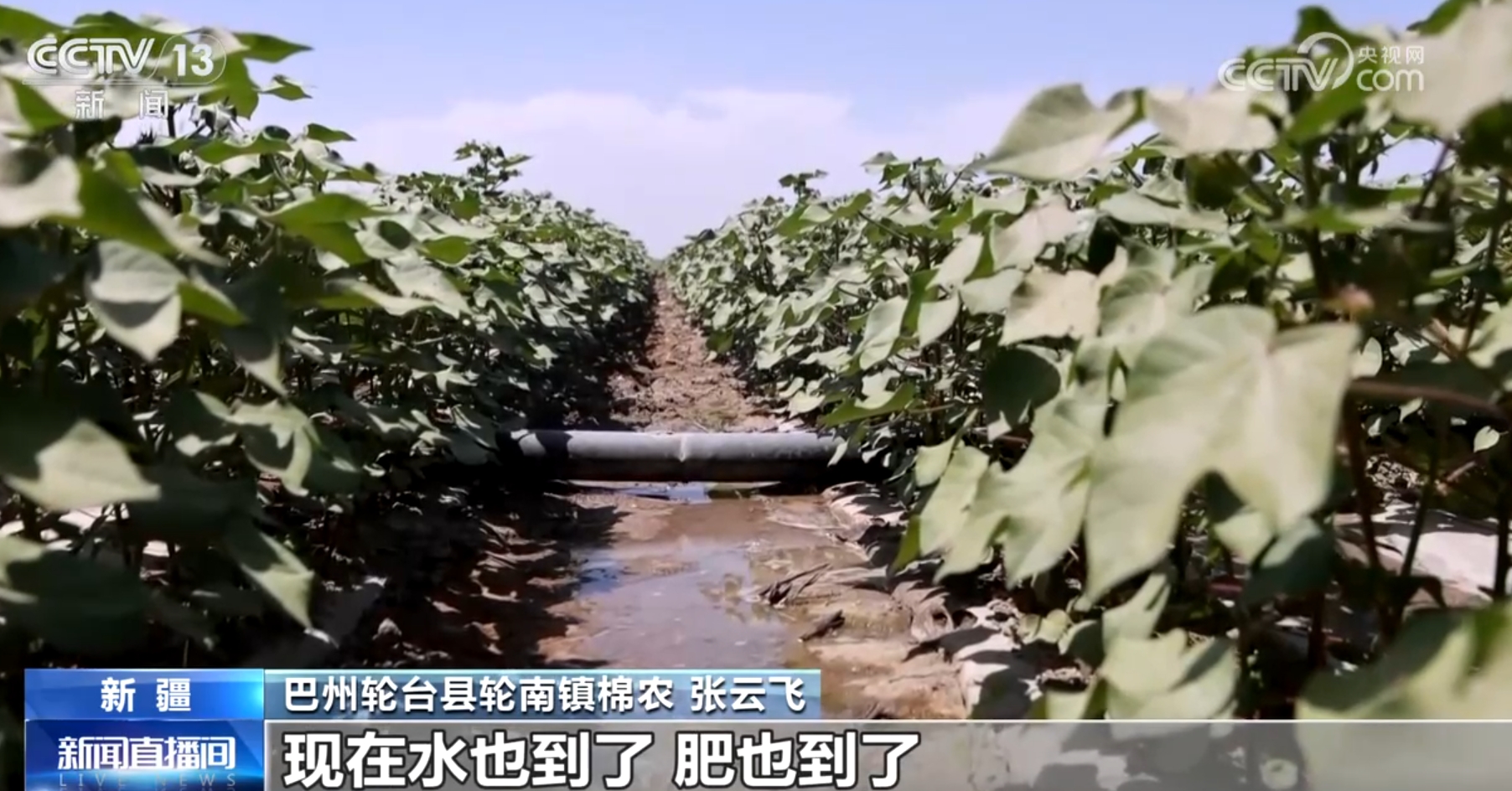 巴州輪臺縣輪南鎮(zhèn)棉農(nóng)張云飛稱:“現(xiàn)在正是對水肥需求的高峰期,正好塔里木河的水來得非常及時,現(xiàn)在水也到了,肥也到了,棉花長勢非常好?!?/p>
