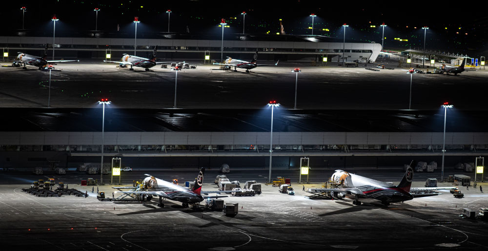 6月2日凌晨拍攝的鄂州花湖國際機(jī)場(chǎng)停機(jī)坪一角。新華社記者 肖藝九 攝