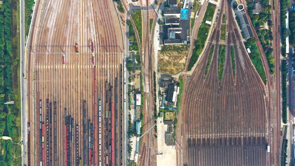 這是2023年9月拍攝的鄭州北站編組場(chǎng)(無人機(jī)照片)。新華社記者 殷剛 攝