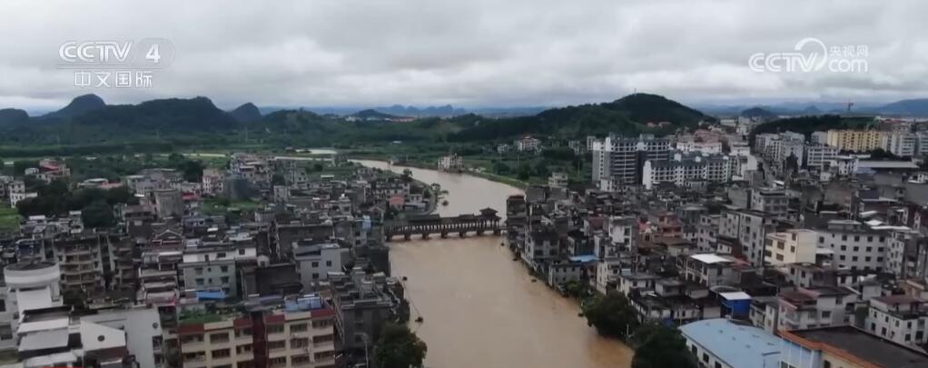 廣西賀州:暴雨致道路積水 河流水位上漲
