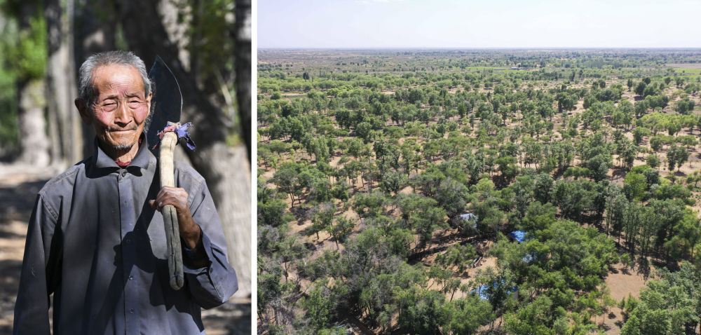 在新疆柯柯牙,當(dāng)?shù)卣菩幸粤止麡I(yè)為主的“誰(shuí)建設(shè)、誰(shuí)管護(hù)、誰(shuí)投資、誰(shuí)受益”荒漠綠化造林模式,在防護(hù)林網(wǎng)中套種蘋(píng)果、核桃、紅棗等經(jīng)濟(jì)林,延續(xù)生態(tài)成果。