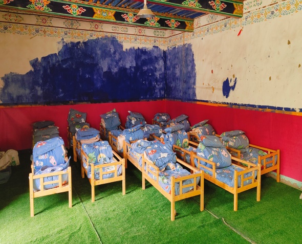 金點(diǎn)子,抓實(shí)干。自階段性入戶工作開展以來,駐西嘎村第十三批工作隊(duì)認(rèn)真了解入戶時(shí)發(fā)現(xiàn)的村幼兒園改造未能推進(jìn)的問題,現(xiàn)場(chǎng)走訪村幼兒園,排查村幼兒園用火、用電、用氣、食品衛(wèi)生安全隱患。在交談中,兩位教師談及幼兒園房間老舊、水泥地板凹凸不平,導(dǎo)致幼兒無法午休的問題,工作隊(duì)第一時(shí)間請(qǐng)示領(lǐng)導(dǎo),現(xiàn)場(chǎng)勘察房間形狀與大小,駐村隊(duì)員自發(fā)購(gòu)買并鋪就64.2平米防滑草坪地毯,以改善園內(nèi)22名幼兒生活環(huán)境,給孩子們創(chuàng)建了相對(duì)舒適、干凈的午休環(huán)境。村幼兒園教師次珍表示:“此次活動(dòng)極大改善了孩子們的生活條件,感謝人行日喀則市分行駐村工作隊(duì)一直以來對(duì)村幼兒園工作的關(guān)心?!?/p>