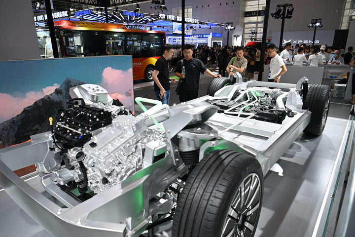 這是在博覽會(huì)現(xiàn)場(chǎng)拍攝的一款智能網(wǎng)聯(lián)汽車平臺(tái)架構(gòu)(6月20日攝)。新華社記者 孫凡越 攝