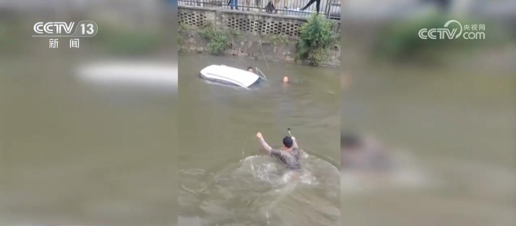 畫面中可以看到,這輛白色小車即將被河水沒過車頂。緊急關頭,三名熱心群眾先后跳下河涌,聯(lián)手營救被困司機。同時岸邊群眾也立即報警,請求救助。