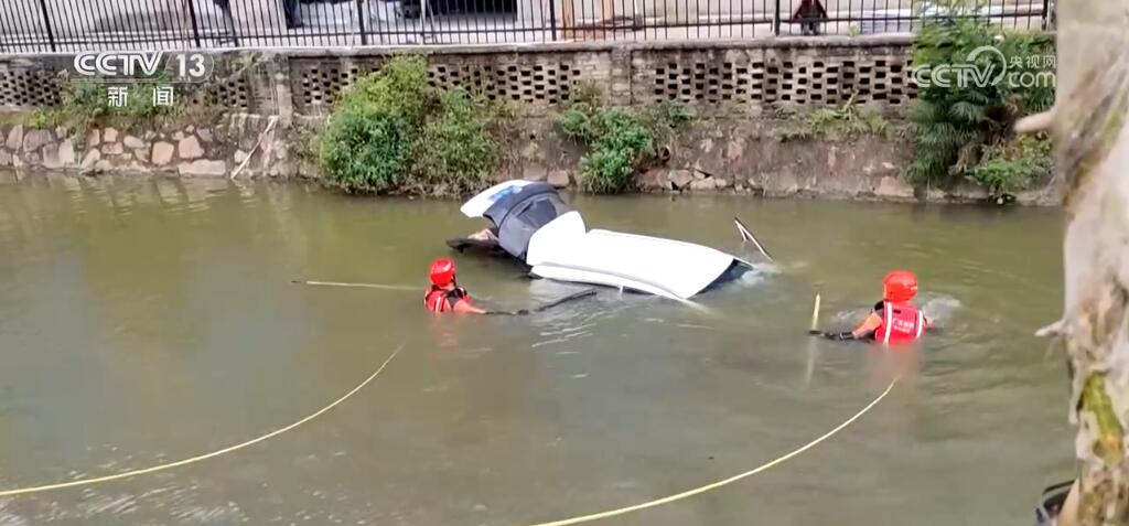 三人齊心協(xié)力幫司機脫困,并將他送往醫(yī)院治療。隨后,接到報警的消防救援人員也趕到現場,下水查看確定車上無人員被困。