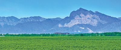 距離羅山約200公里的賀蘭山,碧綠的葡萄從山上覆蓋至山下。山麓的葡萄酒莊園里,游人如織。