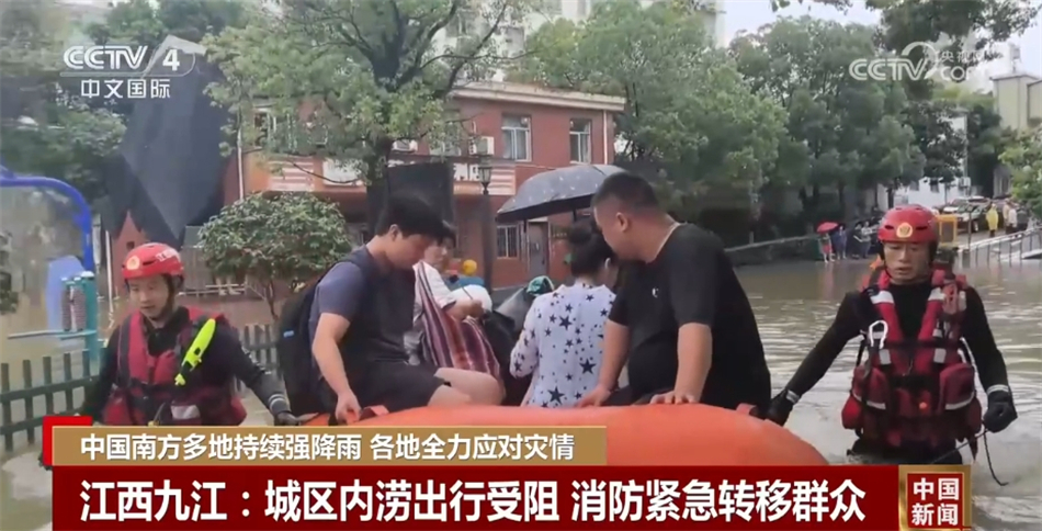 23日,江西九江遭遇強(qiáng)降雨,城區(qū)出現(xiàn)積水內(nèi)澇,部分路段積水深超一米,居民出行受到影響。當(dāng)?shù)叵谰仍藛T利用橡皮艇幫助群眾轉(zhuǎn)移,同時(shí),消防救援人員使用浮艇泵,連接水帶,開(kāi)展排水作業(yè)。
