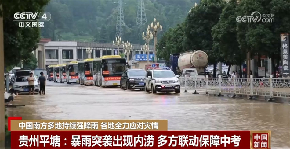 受強(qiáng)降雨的影響,23日,貴州平塘縣低洼路段出現(xiàn)內(nèi)澇。恰逢當(dāng)?shù)刂锌甲詈笠惶?,為保障學(xué)生順利參考,平塘縣第一時(shí)間啟動(dòng)應(yīng)急預(yù)案,引導(dǎo)接送考生車(chē)輛安全行駛。
