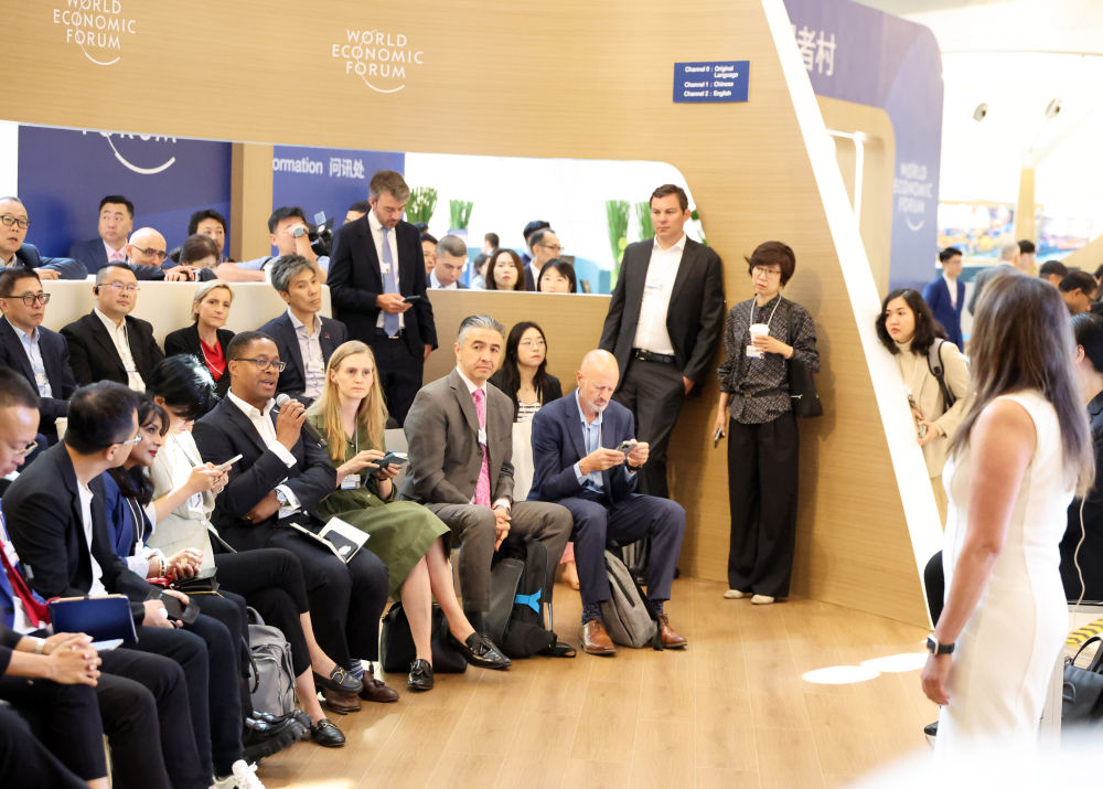 6月26日,在夏季達(dá)沃斯論壇主會(huì)場(chǎng)大連國(guó)際會(huì)議中心,嘉賓參與互動(dòng)討論。新華社記者李鋼攝