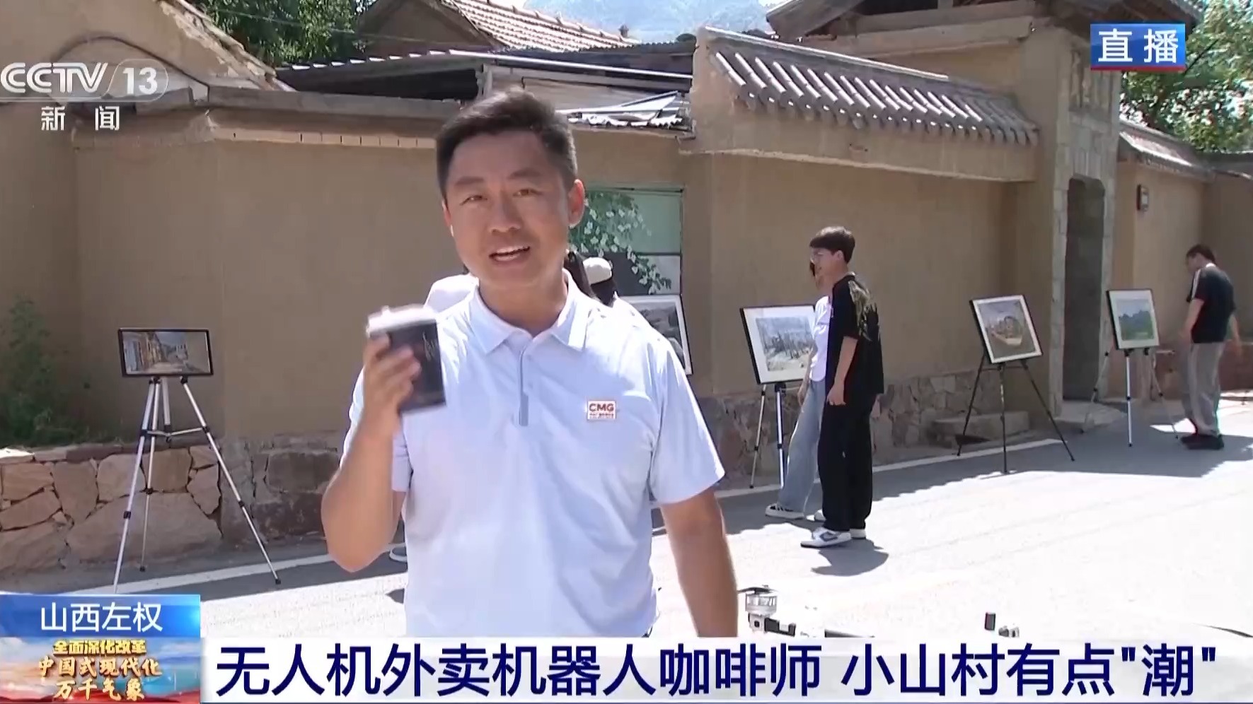 隨著前來寫生的人越來越多,澤城村的“賣點(diǎn)”逐漸多了起來。小小的一杯咖啡在城市里不足為奇,但是在這里我要通過這杯咖啡介紹兩個(gè)特點(diǎn)。第一點(diǎn),這杯咖啡不是我從店里自取,也不是外賣小哥送過來的,而是在直播前我通過由村民操控的這架無人機(jī)收取的,這個(gè)無人機(jī)可攜帶10公斤貨物送達(dá)10公里外的顧客手中。但是無人機(jī)外賣只是它其中一項(xiàng)業(yè)務(wù),如果村里急需醫(yī)療物資或者在災(zāi)害環(huán)境中運(yùn)送緊急物資,它都是一把好手。