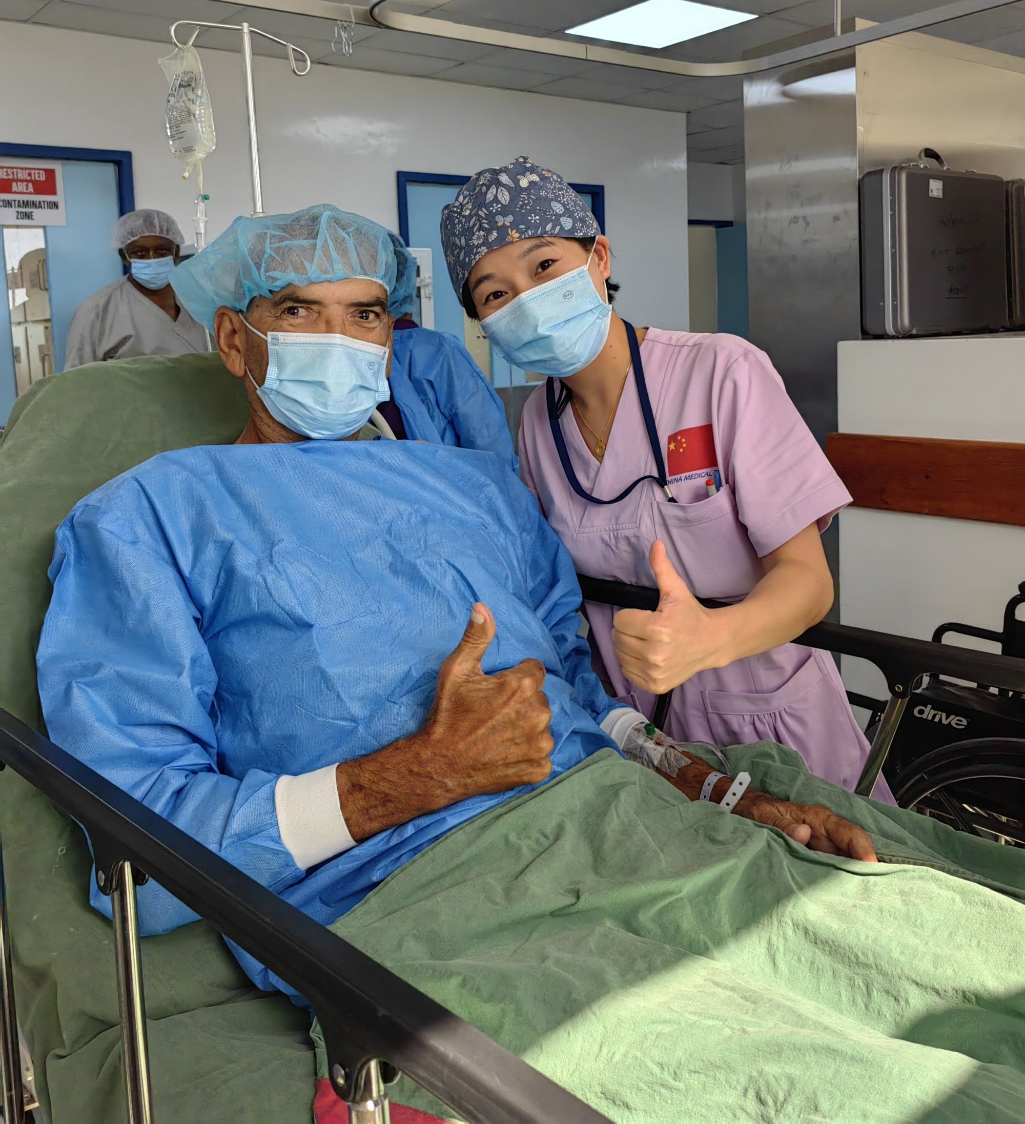 袁小舒:當(dāng)?shù)蒯t(yī)院由于資源有限,所以在腔鏡器械的組裝和手術(shù)配合上,當(dāng)?shù)刈o士不是特別熟悉。護士長聽說我有這方面經(jīng)驗,希望我能給他們提供幫助。憑借在國內(nèi)的扎實基礎(chǔ),我很快地熟悉了手術(shù)器械,重新組裝后順利使用。臺上的手術(shù)醫(yī)生在術(shù)后特別找到我表示感謝,說他們一定會記住這名中國護士,希望以后的手術(shù)我都能在。